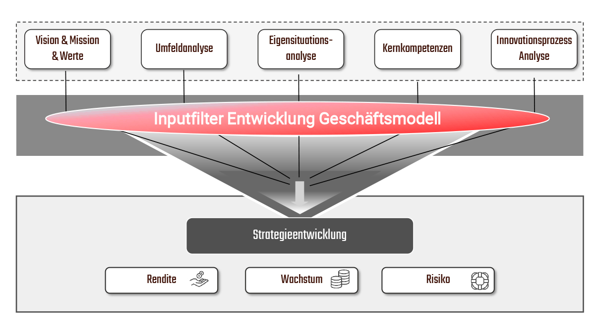 Unser Modell ist so konzipiert, dass Sie es bei zukünftigen Wiederholungen des Strategieprozesses in Ihrem Unternehmen selbständig anwenden können.
